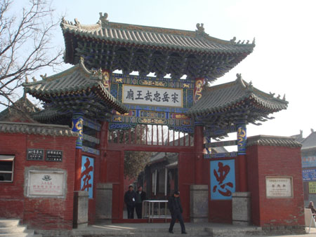 湯陰縣有(yǒu)許多(duō)與嶽$↕飛(fēi)有(yǒu)關的(de)遺址,★←嶽飛(fēi)廟就(jiù)在縣城(chéng)內(nèiδ≠ ↕)。嶽飛(fēi)廟始建年(nián)代不(bù)詳,現(xiàn)址為(λ•wèi)明(míng)景泰元年(nián)(公元1450年(niá✔"n))重建,面積為(wèi)4000多(duō) ÷&♥平方米,殿宇近(jìn)百間(jiān)。精忠坊是(shì)嶽飛<↕(fēi)廟的(de)頭間(jiān),為(wèi)一(yī)座營造精美∑β£(měi)的(de)木(mù)結構牌樓。兩側八字§"牆上(shàng)刻有(yǒu)1.8米高(g•₩āo)的(de)兩字“忠”、“孝”。進入門(mén)檻,便見(jià×≈n)石階下(xià)跪著(zhe)五具鐵(tiě)鑄像,即當年(nián)♥≤φ殺害嶽飛(fēi)的(de)秦桧、王氏、萬俟禹、張俊、王俊。跪像背後立一(y'εΩ∑ī)尊金(jīn)銅像,怒目執劍,對(duì)秦桧等人(rén)呈居高(gāΩββo)臨下(xià)鎮壓之勢。兩側楹聯上(shàng)寫著(zhe): •$£